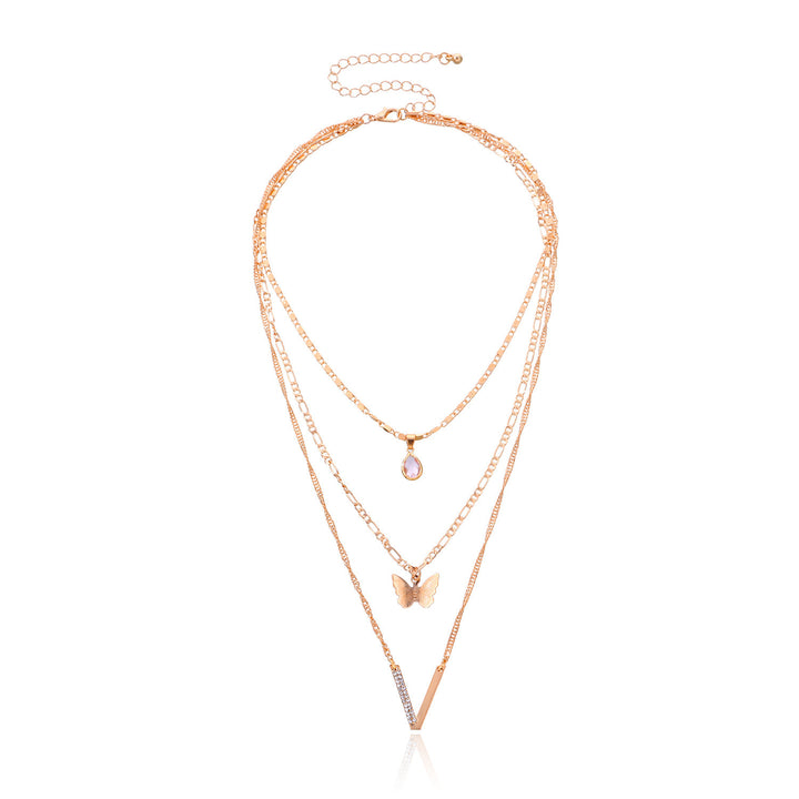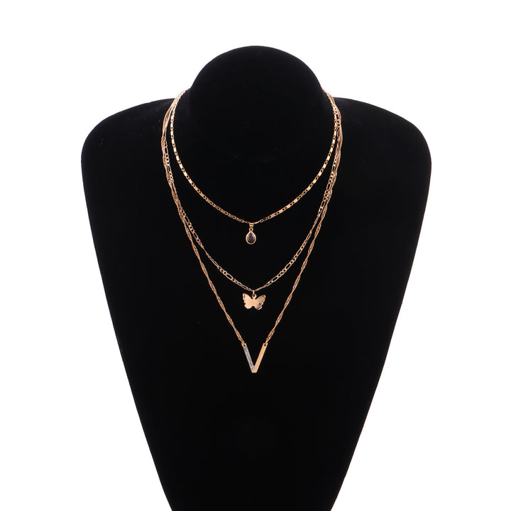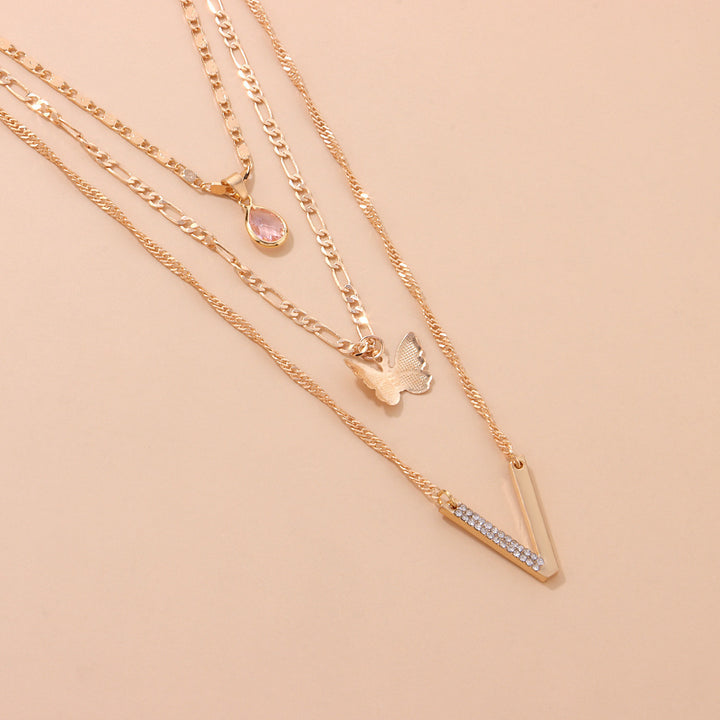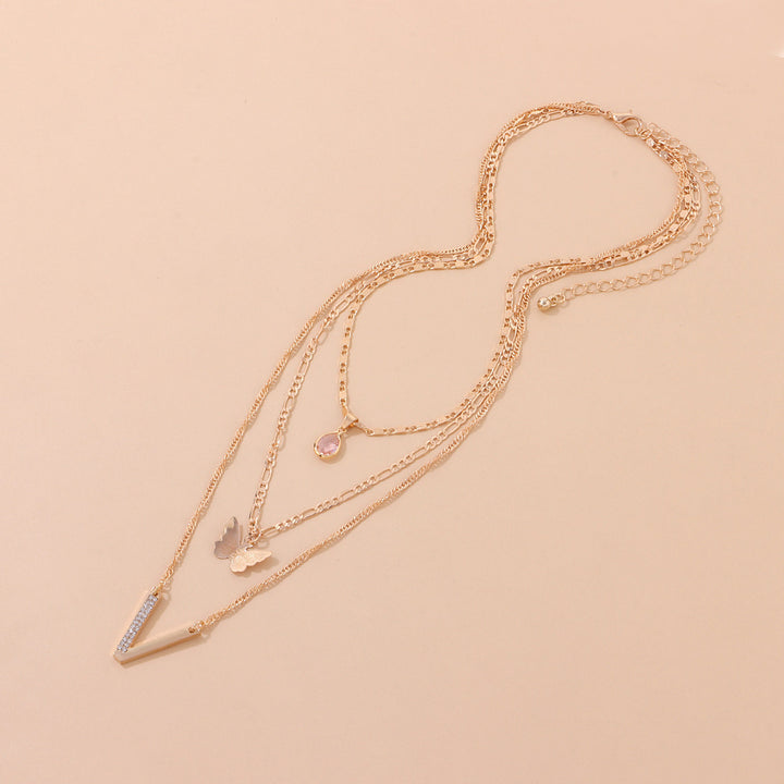 A Multi layer Necklace With Diamond V shaped Butterfly Drop Drop Pendant